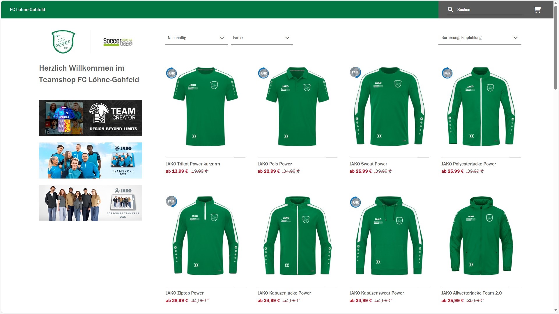 Sportkleidung im Gohfeld-Look für jeden und jede. Im Teamshop der SoccerBase könnt ihr euch für euren persönlichen Bedarf eindecken. Nicht nur Trikots, Jacken und Hosen, sondern auch Rucksäcke, Mützen, Handschuhe und mehr. Schaut gerne rein und bestellt euch eure Gohfeld-Klamotten direkt nach Hause.