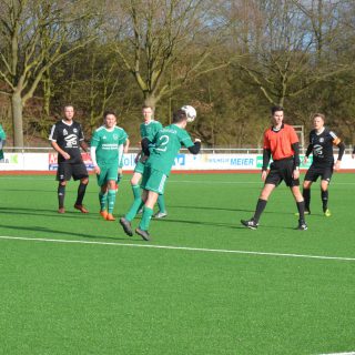 Erst zum Ende der ersten Hälfte begannen die Grün-Weißen mehr Akzente zu setzen, „als wenn wir diesen Rückschlag gebraucht hätten“, wie Trainer Hahne befand. Für einen Torschuss reichte es noch nicht, stattdessen beförderte Alexander Schwarze in der 33. Minute eine Flanke unmittelbar vor das Mennighüffener Tor, wo Marko Neugebauer den Ball ins eigenen Netz zum umjubelten 1:2 Anschlusstreffer ablenkte.
