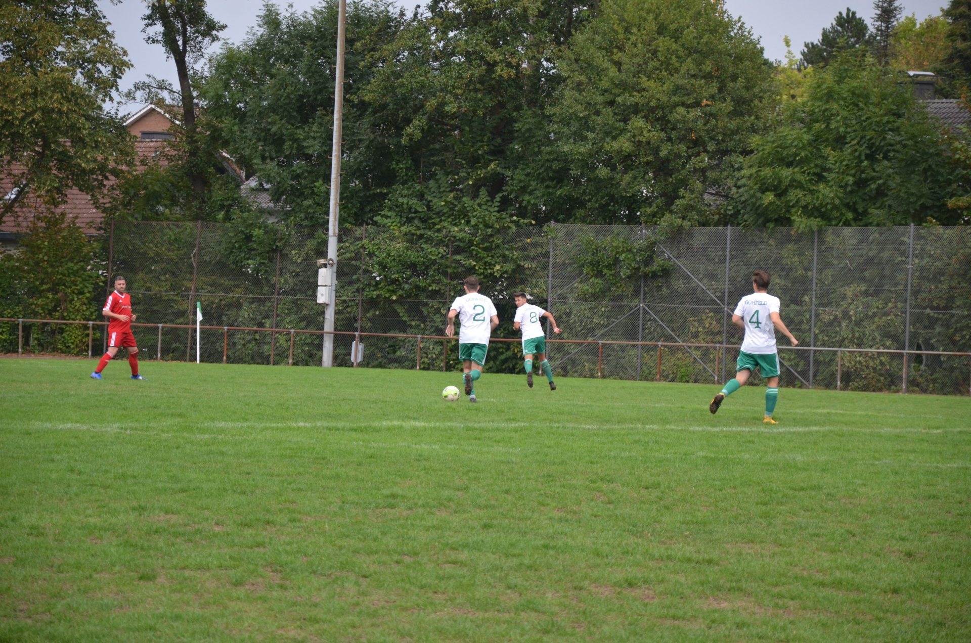 Die Gäste stehen zunächst sehr tief in der eigenen Hälfte und suchen ihre Möglichkeiten durch Konter. Immer wieder wird hier Elverdissens Nr. 10 Tobias Schröder für einen langen Ball gesucht. Zu Anfang geht diese Taktik fast auf, als Schröder alleine vor’m Gohfelder Tor auftaucht – Schlussmann Lukas König kann die 1:1-Situation jedoch klären. Danach übernehmen die grün-weißen Gastgeber immer mehr das Spiel und erarbeiteten beste Möglichkeiten in Führung zu gehen. Ein Kopfball von Innenverteidiger Fabian Neumann nach einem Freistoß von Flottmann in der 18. Minute, wie auch ein Distanzschuss von Schwarze nach einer Ecke eine Minute später, können gerade noch entschärft werden. Auch ein darauf folgender Distanzschuss von Gohfelds 10er Raphael Rasche rutscht leider über die Latte. „Zu diesem Zeitpunkt wäre die Führung völlig verdient gewesen“, ärgert sich Hahne später etwas.